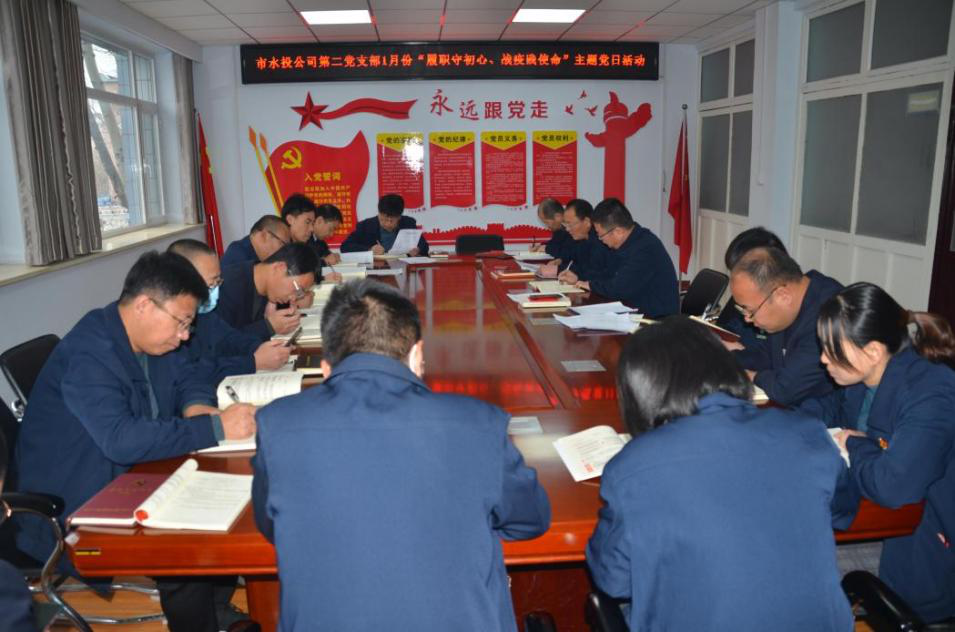 按照市水投公司黨委統(tǒng)一部署要求,第二黨支部2022年1月4日下午組織全體黨員、積極分子、群眾代表開展了“履職守初心、戰(zhàn)疫踐使命”主題黨日活動,會議由支部書記吳爭兵主持。