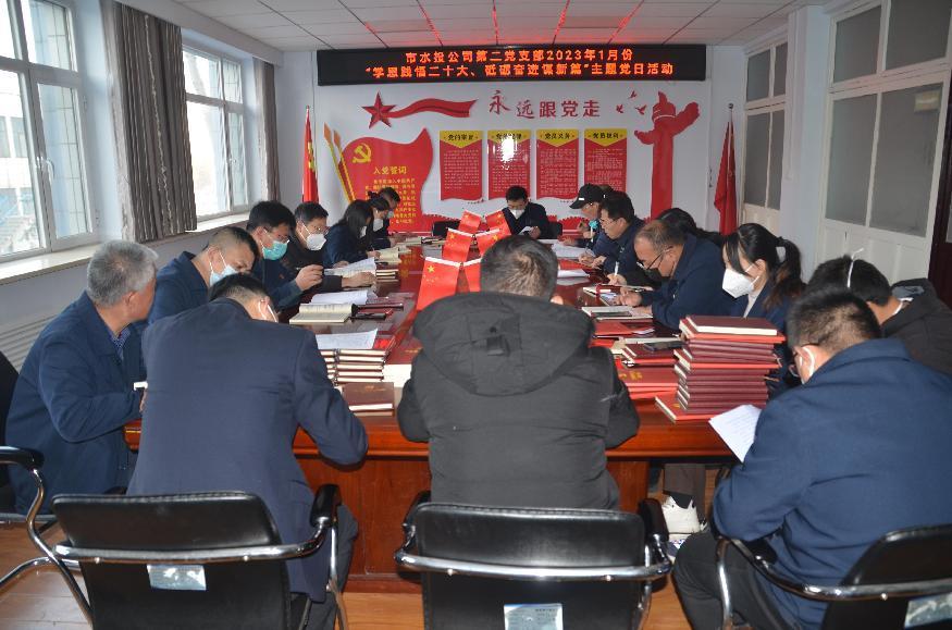 按照市水投公司黨委統(tǒng)一部署要求,第二黨支部于2023年1月3日下午組織全體黨員、積極分子開(kāi)展了“學(xué)思踐悟二十大、砥礪奮進(jìn)謀新篇”主題黨日活動(dòng),會(huì)議由支部書(shū)記吳爭(zhēng)兵主持。