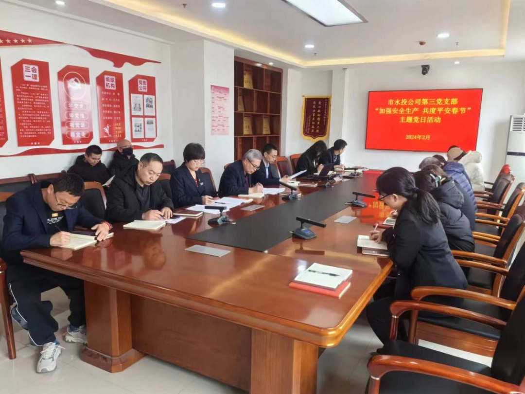 按照市委組織部《關(guān)于認(rèn)真開展2024年2月黨支部主題黨日活動(dòng)的通知》要求,結(jié)合水投公司黨委安排部署,2月5日上午,第三支部組織黨員開展了“加強(qiáng)安全生產(chǎn) 共度平安春節(jié)”主題黨日活動(dòng)。