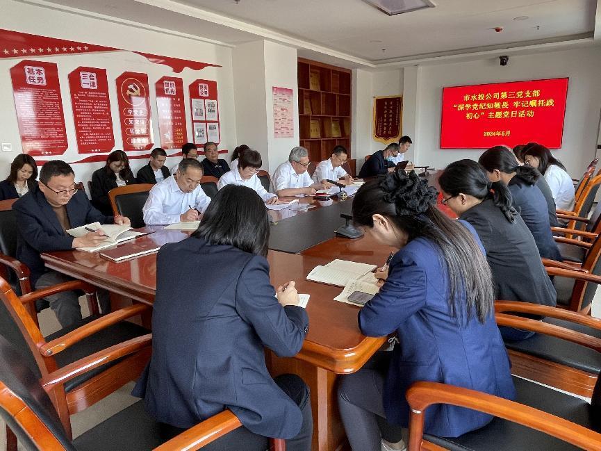 按照市委組織部《關(guān)于認真開展2024年5月黨支部主題黨日活動的通知》要求,結(jié)合水投公司黨委安排部署,5月6日下午,第三支部組織黨員開展了“深學(xué)黨紀知敬畏 牢記囑托踐初心”主題黨日活動。