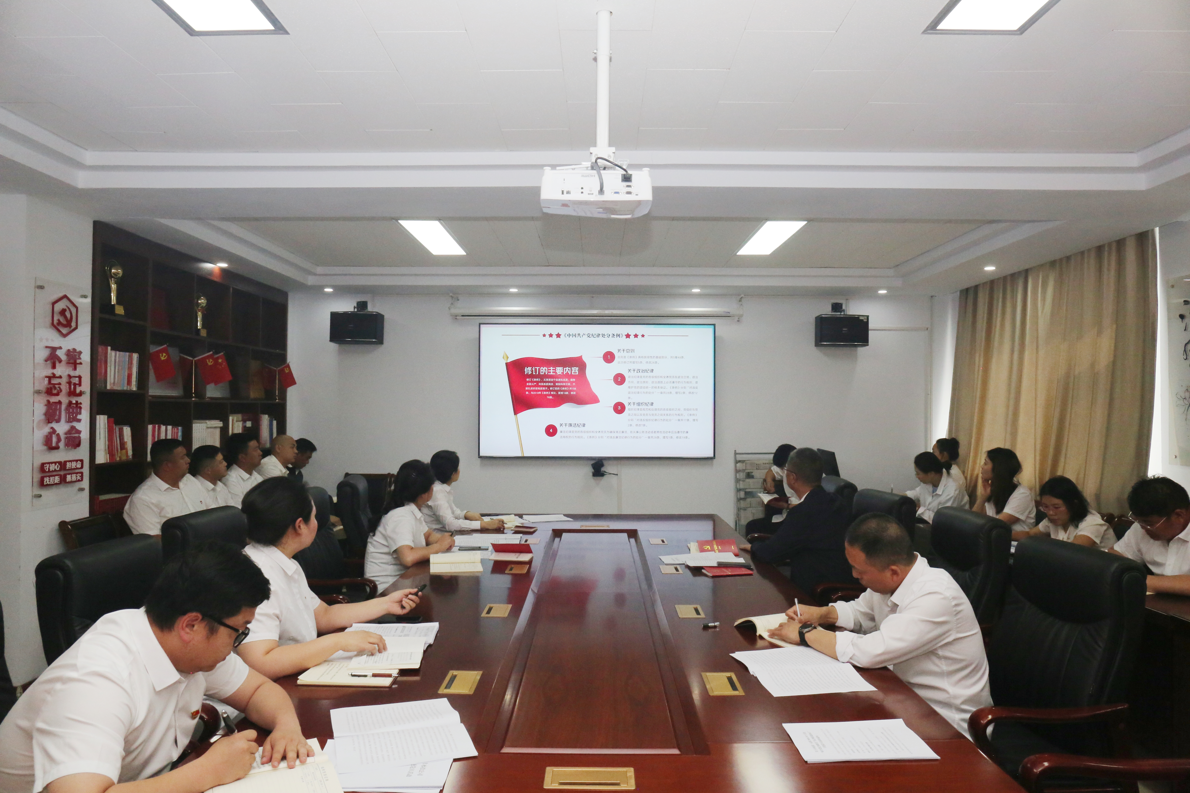 為扎實(shí)推進(jìn)黨紀(jì)學(xué)習(xí)教育走深走實(shí),進(jìn)一步引導(dǎo)全體黨員干部樹(shù)牢責(zé)任意識(shí)、底線意識(shí)、紀(jì)律意識(shí),組織委員胡凱菲圍繞《中國(guó)共產(chǎn)黨紀(jì)律處分條例》修訂的重要意義、新修訂的主要內(nèi)容以及如何抓好《條例》的貫徹執(zhí)行,理論聯(lián)系實(shí)際進(jìn)行授課,帶領(lǐng)參會(huì)人員重點(diǎn)對(duì)《條例》中新增的、平時(shí)容易忽略的、同志們可能存在認(rèn)識(shí)誤區(qū)等違紀(jì)行為進(jìn)行重點(diǎn)學(xué)習(xí),引導(dǎo)黨員干部不斷強(qiáng)化紀(jì)律意識(shí)和規(guī)矩意識(shí),嚴(yán)格規(guī)范“八小時(shí)”以外言行舉止,自覺(jué)抵制不良風(fēng)氣,從源頭上筑牢遠(yuǎn)離腐敗的思想防線。