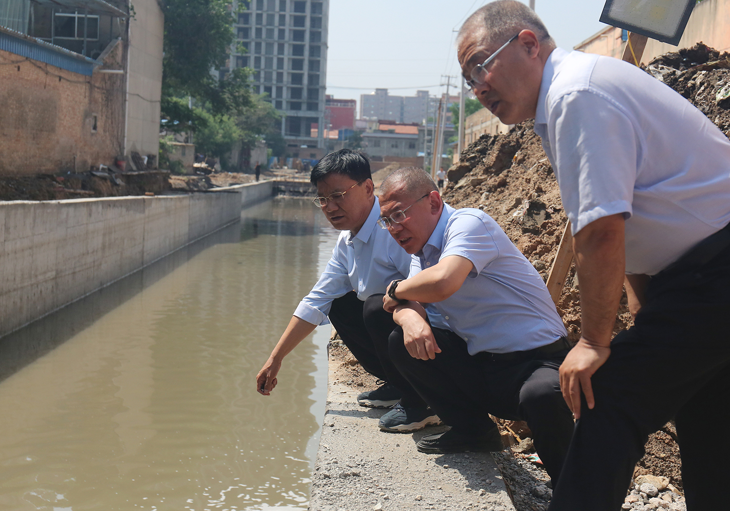 二是強化排查,消除隱患。下雨當晚,公司黨委書記、董事長兼總經理崔作銘帶領相關負責人冒雨赴姚暹渠禹都段、干河綜合治理項目工地對重點排水環(huán)節(jié)進行巡查排查,每到一處標段,詳細詢問項目負責人實際情況,針對現狀,要求做到基坑及時回填,河道及時清理疏通,確保排洪渠道安全通暢,消除防汛隱患。