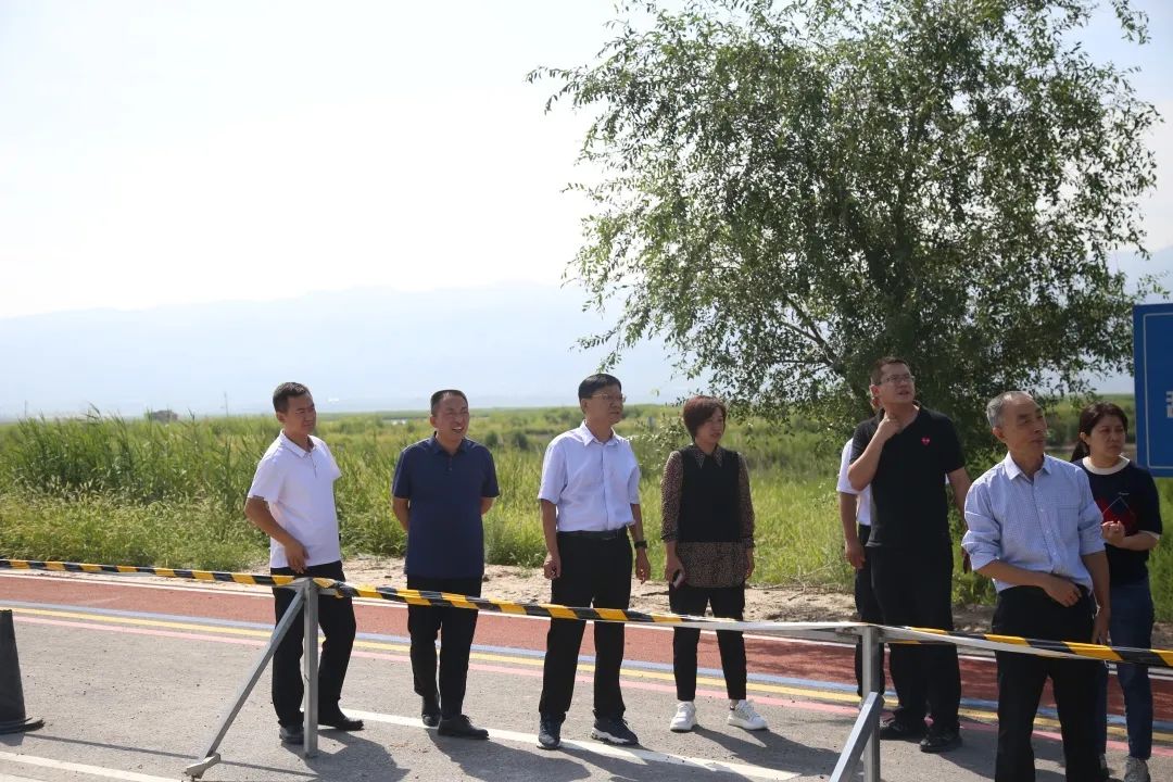 崔作銘一行順著環(huán)湖綠道查看沿線調(diào)水、19號路、沿線出口環(huán)境情況,0號路及連接鴨子池路面鋪裝進度,就項目施工存在問題與項目部負(fù)責(zé)人、施工和監(jiān)理單位進行商討優(yōu)化。他強調(diào),鹽湖堤埝項目部要壓緊、壓實各方責(zé)任,組織好施工單位及監(jiān)理單位,高標(biāo)準(zhǔn)、高質(zhì)量、高效率完成環(huán)湖綠道、跨湖大道以西環(huán)境整治;要保持干勁,全力以赴克服困難,把握時間節(jié)點,倒排工期、開足馬力,加快施工進度,對已完成的堤埝整治,再細(xì)化美化,做到沿線干凈整潔,環(huán)境優(yōu)美宜人,為省旅游發(fā)展大會的順利召開營造良好環(huán)境。