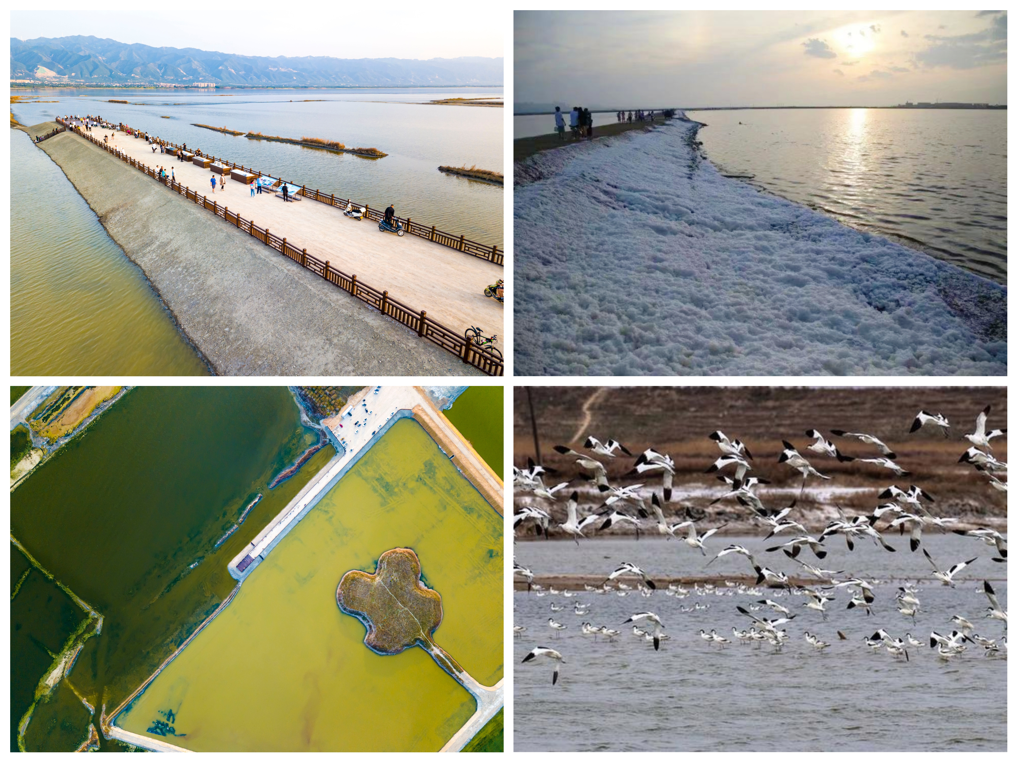 2021年以來,由我公司負責實施的鹽湖堤埝除險加固及生態(tài)修復工程,經(jīng)過對原運硝路改造、堤埝平整加固、畦田清淤、江道疏浚,完成堤埝整治98千米、環(huán)湖綠道13.14千米、雜草清理41萬平方米、草皮護坡10萬平方米、淤面清理14萬立方米;實施北坡綠化、岸帶綠化、荒灘綠化等工程,最大限度地保留了鹽湖的自然風貌,厚植了鹽湖的生態(tài)底色。“退鹽還湖”兩年多來,鹽湖已經(jīng)逐步從礦區(qū)、工業(yè)區(qū)變?yōu)樯鷳B(tài)保護區(qū)、旅游打卡地,為鹽湖長遠可持續(xù)發(fā)展預留了資源空間。