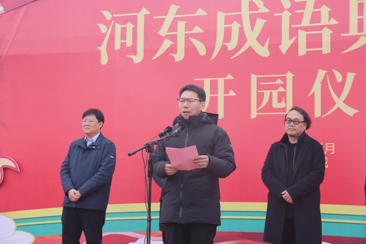 啟動儀式由運城市委宣傳部長王志峰主持,運城市文化和旅游局黨組書記、局長陳小光同志介紹了河東成語典故園策劃創(chuàng)意及實體達效情況;市水務投資建設開發(fā)有限公司黨委書記、董事長兼市鹽湖生態(tài)保護開發(fā)中心副主任崔作銘匯報了河東成語典故園建設概況;中國美術(shù)學院院長、黨委副書記高世名同志做了致辭;最后中共運城市委副書記、市人民政府市長儲祥好同志宣布河東成語典故園開園,臺上領(lǐng)導和嘉賓共同推動啟動桿,百人齊聚,彩煙如虹當空,裊裊綻放,共同見證了這一激動人心的重要時刻。