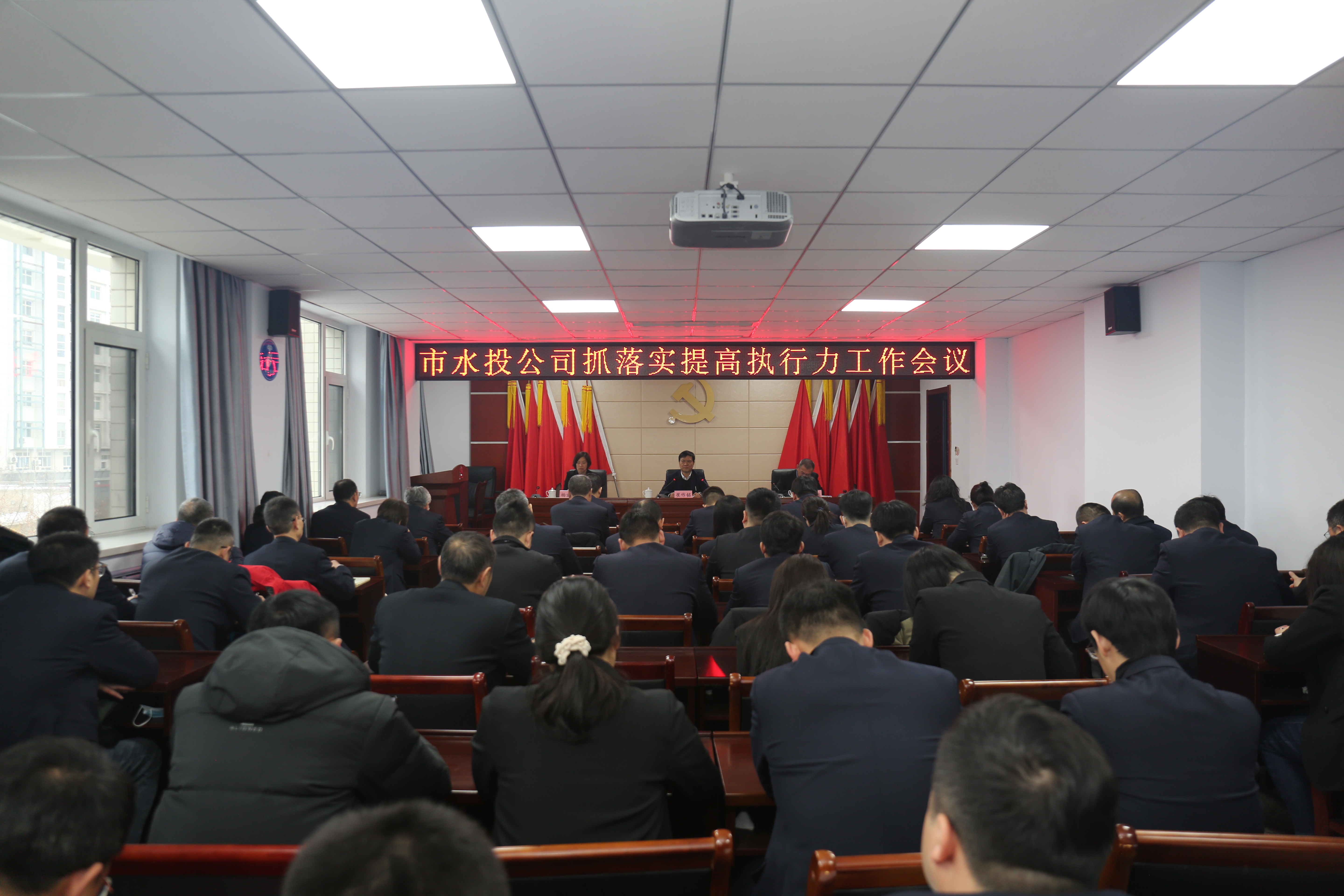 為全面提升工作效能,確保各項工作任務(wù)落到實處,2月21日上午,市水投公司召開抓落實,提高執(zhí)行力工作會議。公司黨委書記、董事長崔作銘參會并講話,副總經(jīng)理范永勝主持會議。