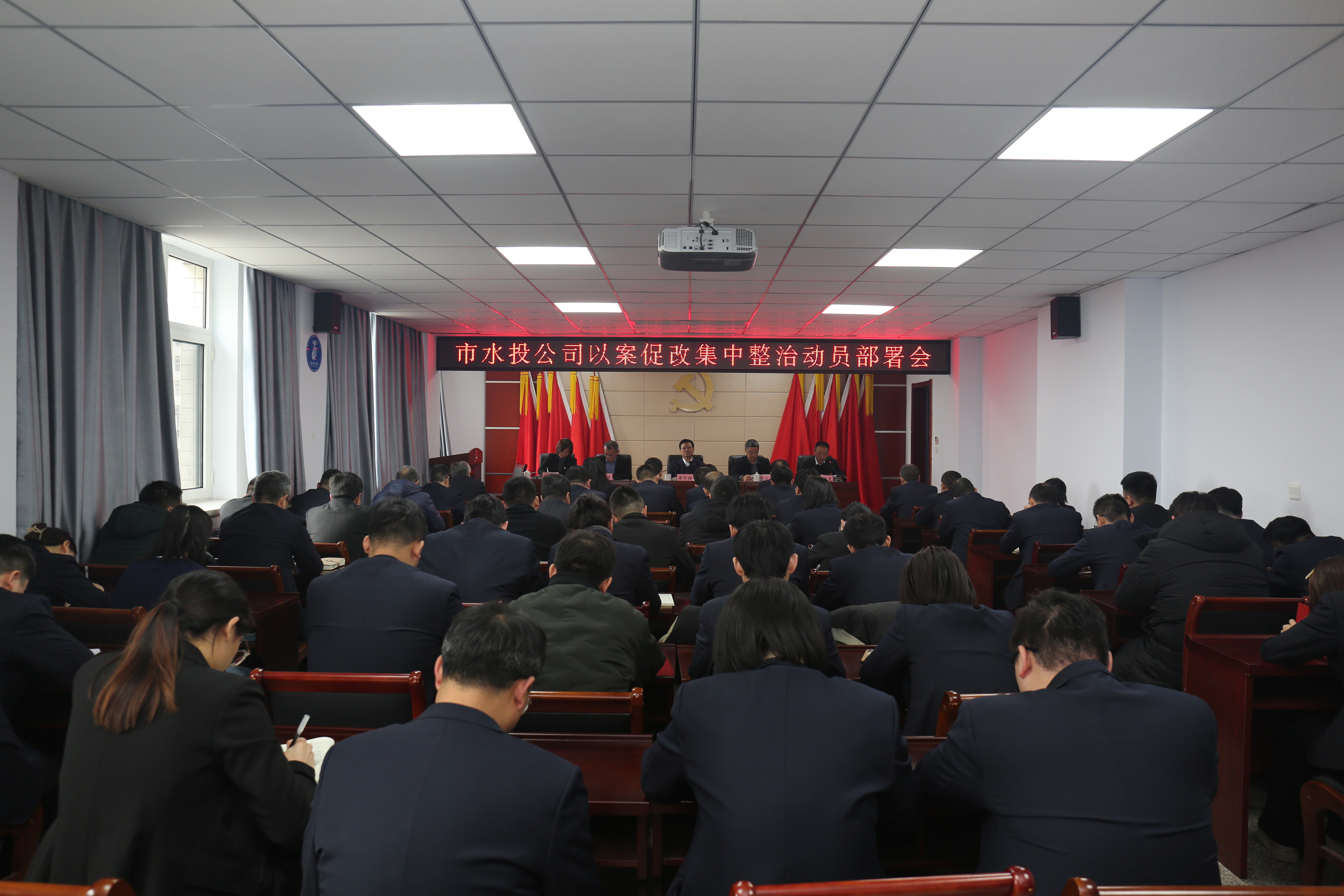 2月22日下午,市水投公司召開以案促改集中整治動員部署會議,公司機(jī)關(guān)全體人員及各子公司班子成員參加會議,黨委副書記、總經(jīng)理薛文兵主持會議。