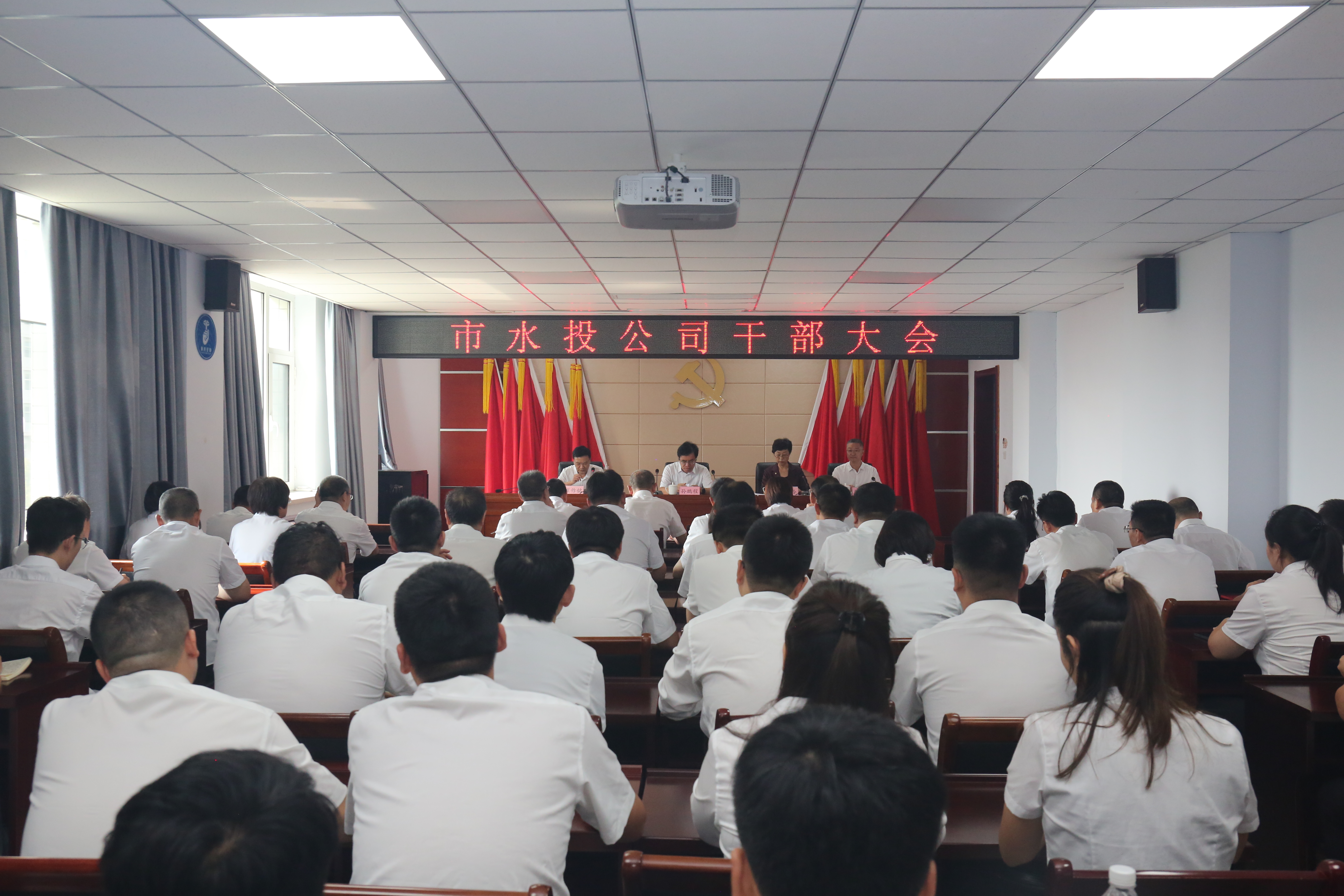 9月2日下午,市水投公司召開干部大會(huì)。市政府副市長(zhǎng)孫鵬程,市委組織部副部長(zhǎng)、市委老干部局局長(zhǎng)丁文玲出席會(huì)議并講話。公司原黨委書記崔作銘主持會(huì)議。公司及子公司班子成員、公司全體干部職工參加會(huì)議。