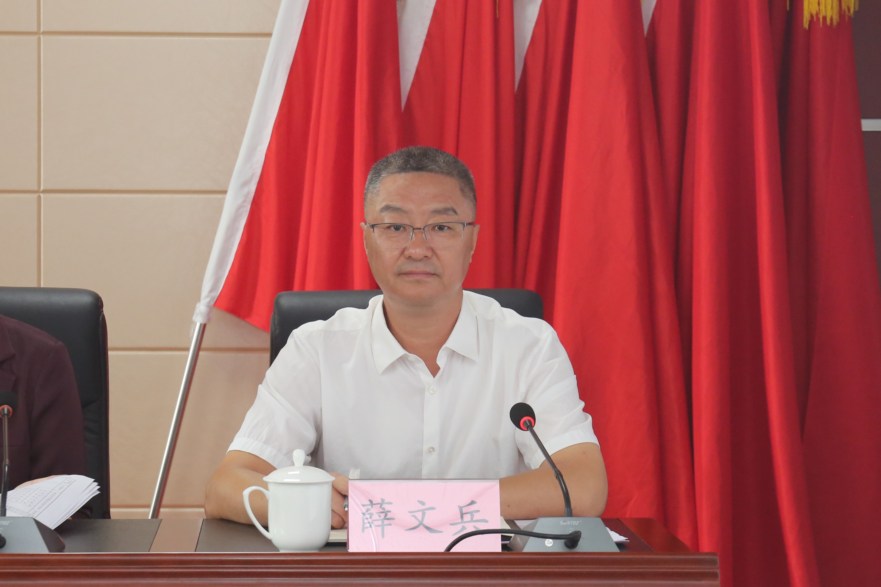 丁文玲宣讀了市委關(guān)于薛文兵同志任市水投公司黨委書記的通知。