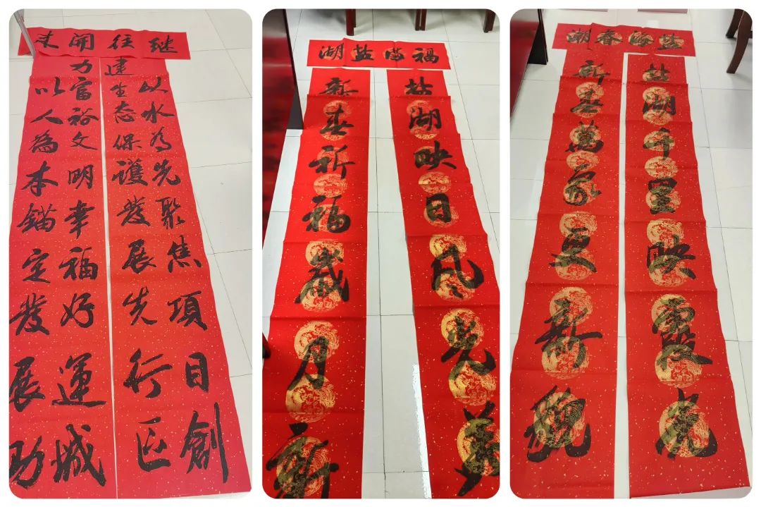 活動現(xiàn)場,墨香四溢,年味濃濃。國家一級美術(shù)師胡增福老師揮毫潑墨,筆走龍蛇,“天賜鹽湖聚寶氣,地生靈韻映華光”“金蛇獻瑞迎新春,賀歲納福慶團圓”……一幅幅寓意吉祥、滿載祝福的春聯(lián)和福字躍然紙上,也將節(jié)日的祝福和對公司高質(zhì)量發(fā)展的美好愿望融入其中。職工們一邊駐足欣賞書法藝術(shù),一邊挑選自己心儀的春聯(lián),臉上洋溢著喜悅與期待,現(xiàn)場氣氛熱烈而溫馨。