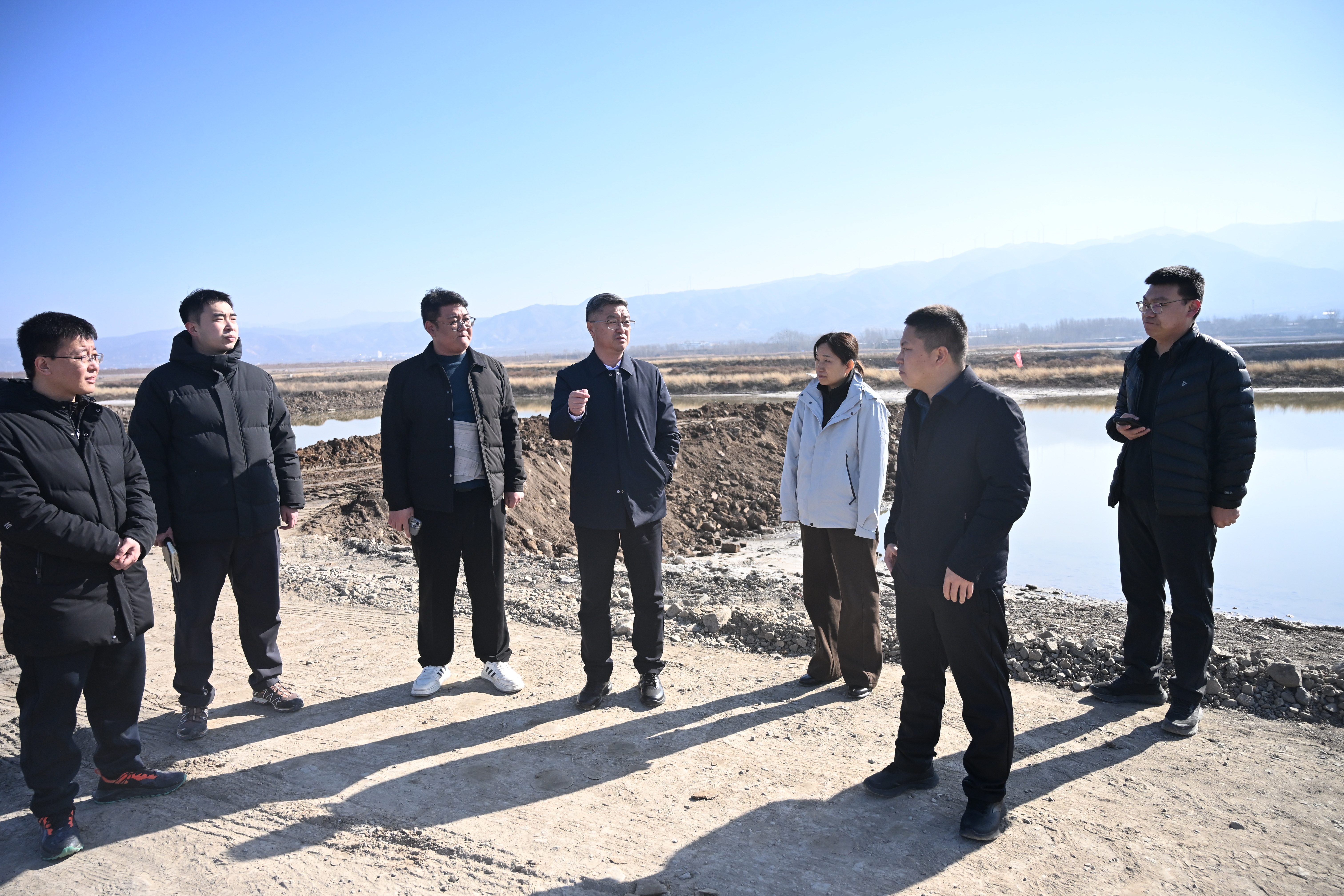 1月8日上午,黨委書記、董事長薛文兵前往鹽湖生態(tài)修復(fù)項(xiàng)目進(jìn)行實(shí)地調(diào)研。黨委副書記、總經(jīng)理?xiàng)钏仄?,副總?jīng)理任曉晨及相關(guān)負(fù)責(zé)人參加。