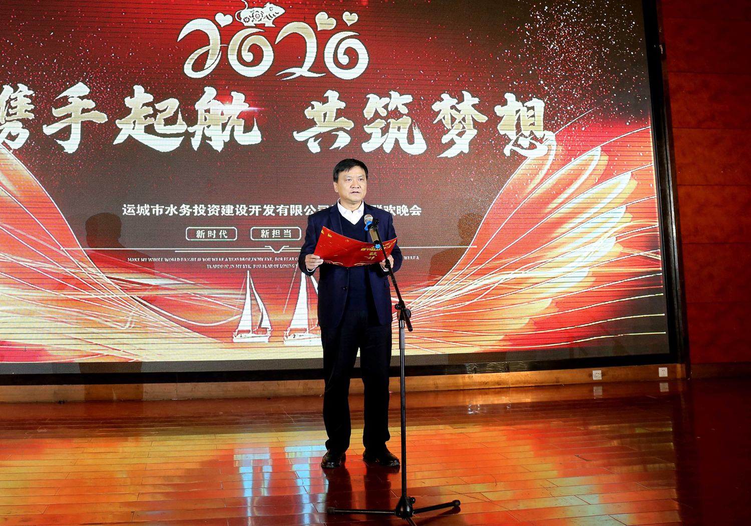 首先公司黨委書記、董事長兼總經(jīng)理崔作銘致新年賀詞,代表公司班子感謝市國資委、山西建工集團(tuán)領(lǐng)導(dǎo)光臨晚會,感謝所有員工對公司發(fā)展的辛勤奮斗,并向全體人員致以節(jié)日的問候和祝福?;仡?/font>2019,水投公司成績顯著;展望2020,還需篤定心志負(fù)重前行。他指出要以習(xí)近平新時代中國特色社會主義思想為指引,貫徹落實(shí)習(xí)總書記“三篇光輝文獻(xiàn)”精神,緊緊圍繞市委市政府水系項(xiàng)目建設(shè),不忘初心,牢記使命,以構(gòu)建生態(tài)水系,打造優(yōu)美環(huán)境,建設(shè)宜居城市,造福人民群眾的信念,只爭朝夕,不負(fù)韶華,積極推動水系項(xiàng)目建設(shè)。