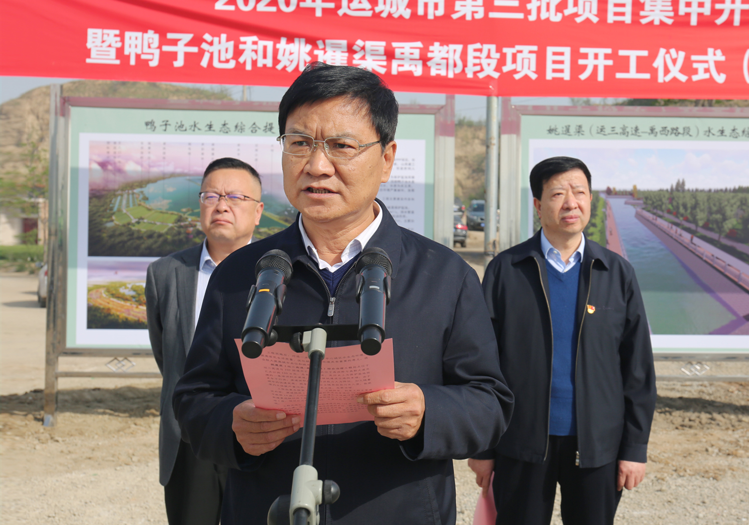4月15日,在全市第三批重點(diǎn)項(xiàng)目集中開工分會(huì)場,鴨子池北口,我公司實(shí)施的“1311”重點(diǎn)工程項(xiàng)目姚暹渠(運(yùn)三高速-禹西路)水環(huán)境綜合治理PPP項(xiàng)目和鴨子池水生態(tài)綜合提升工程PPP項(xiàng)目舉行開工儀式,市水務(wù)局局長靳虎剛,市水投公司董事長崔作銘、副總經(jīng)理呂希汶,運(yùn)城經(jīng)開區(qū)管委會(huì)副主任張大虎、鹽湖區(qū)水務(wù)局局長王杰妮,安邑辦事處主任孔繁榮、東郭鎮(zhèn)鎮(zhèn)長薛世鵬,兩個(gè)工程的項(xiàng)目管理公司高強(qiáng)、胡峰偉董事長,山西建工西北分公司李興波經(jīng)理等部門領(lǐng)導(dǎo)參加了開工儀式。開工儀式由市水投公司副總經(jīng)理范永勝主持。