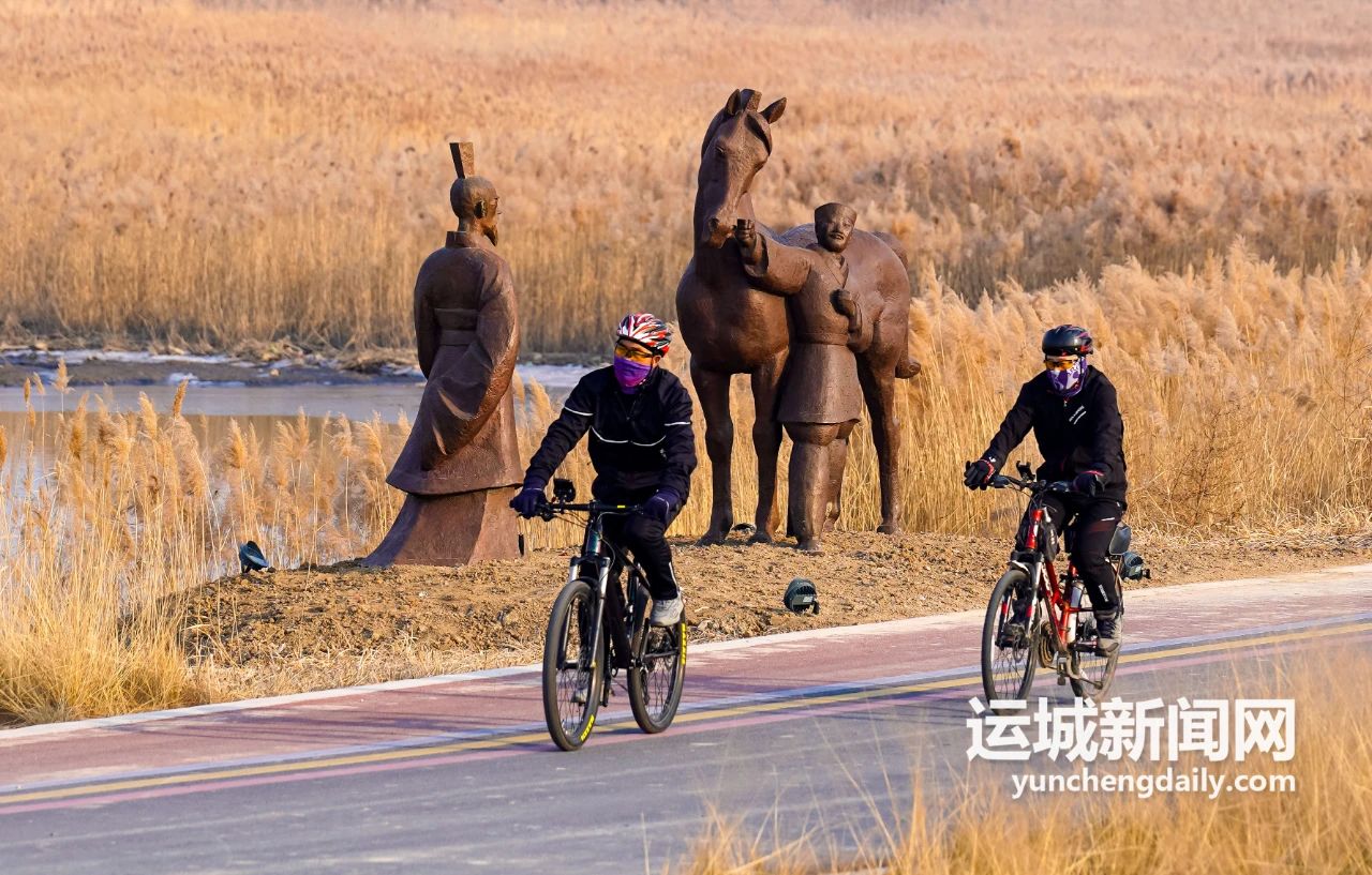 剛?cè)雸@就看到極具河?xùn)|特色的風(fēng)物,一冊(cè)竹簡(jiǎn)矗立在入口處,“雷澤巨跡”“鯉躍龍門”幾個(gè)字入了心。再往深處,亦見(jiàn)豐盈清雅的山水風(fēng)光。金色的蘆葦叢,波光粼粼的鴨子池,遠(yuǎn)處城市煙火氣的剪影,近處清麗婉轉(zhuǎn)的鳥(niǎo)鳴聲……
