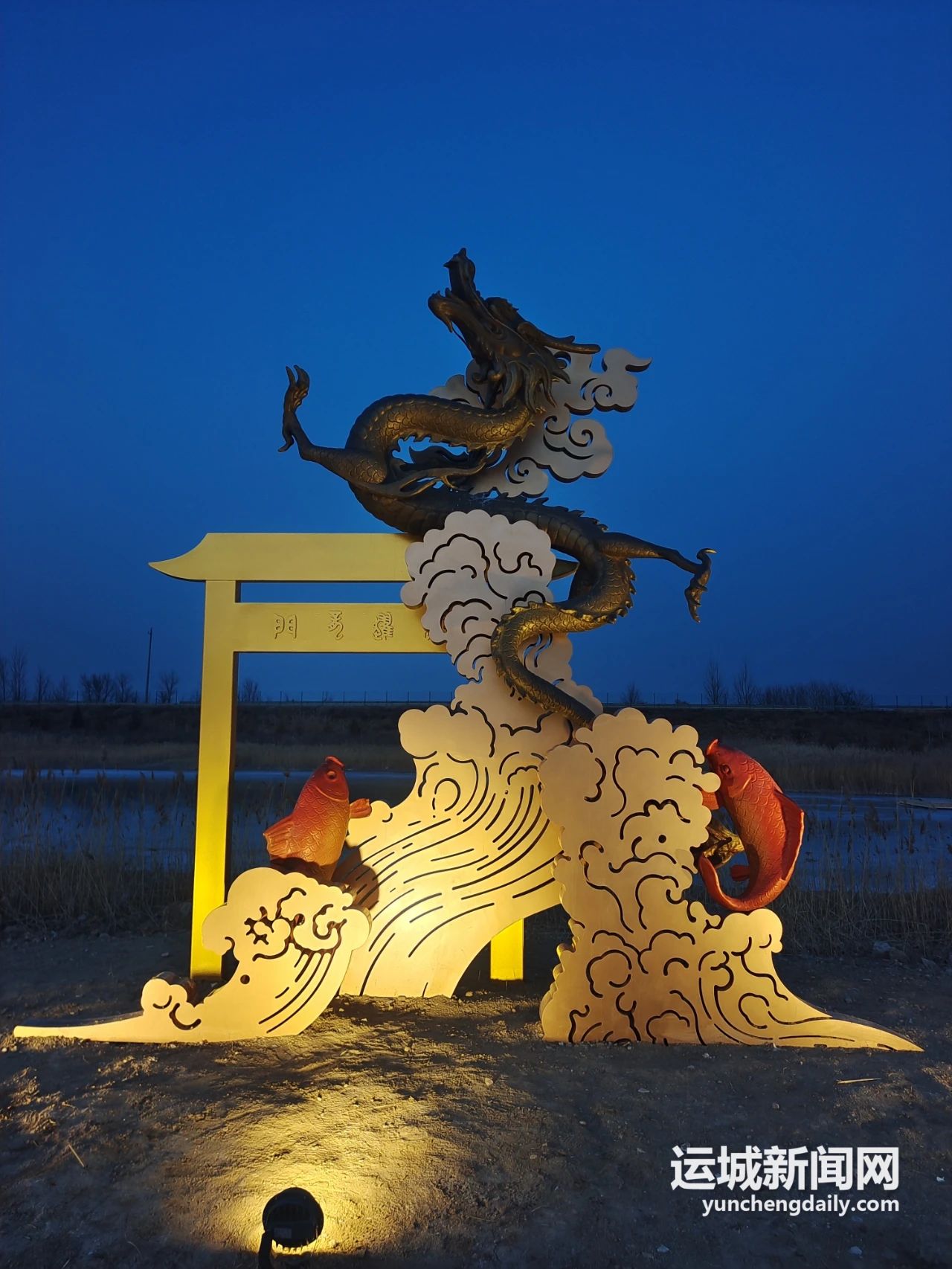 “鯉躍龍門”雕塑,魚(yú)躍龍門,鯉魚(yú)化龍,栩栩如生,比喻人要改變命運(yùn),必定逆流而上,奮發(fā)圖強(qiáng),總有成功之日……
