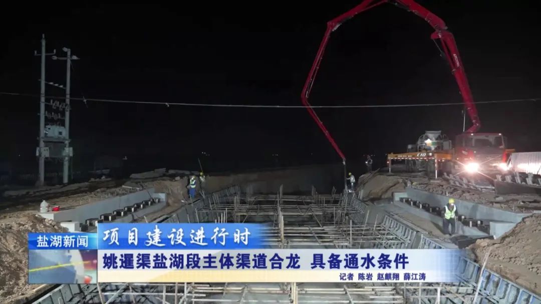 現(xiàn)在是4月28日晚上11時30分,在我身后,姚暹渠鹽湖段最后一部分水泥板正在進行澆筑。澆筑完成后,全長24.9公里的姚暹渠鹽湖段主體渠道將實現(xiàn)合龍,形成完整的過水通道,標志著工程迎來關鍵的階段性勝利。